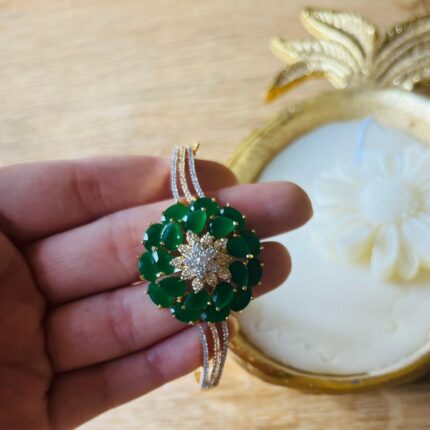 Green Stone Kundan Studded Indian Queen Style Bracelet
