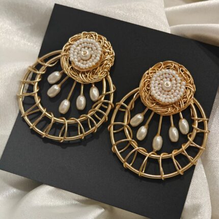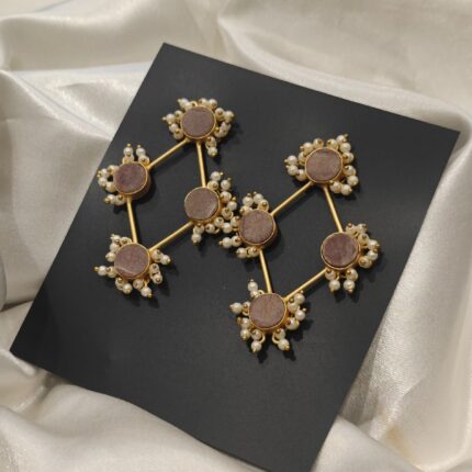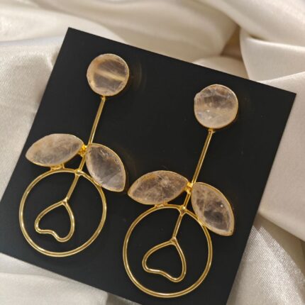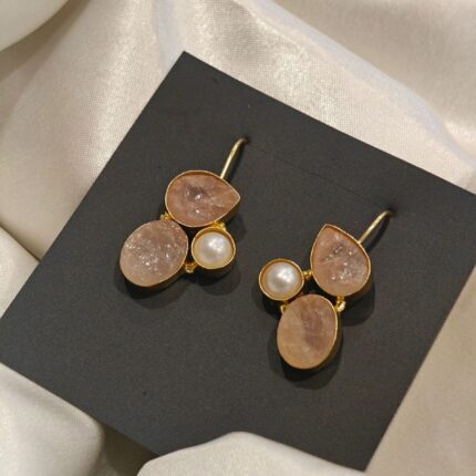 Pink Leaf & Gold Heart Stylish Indo Western Earring